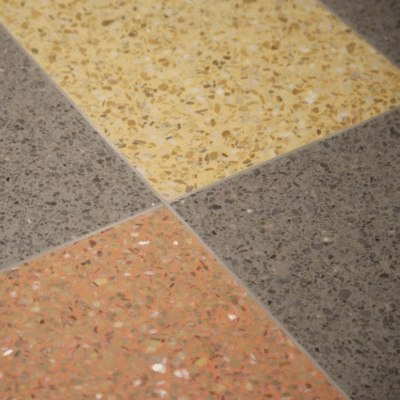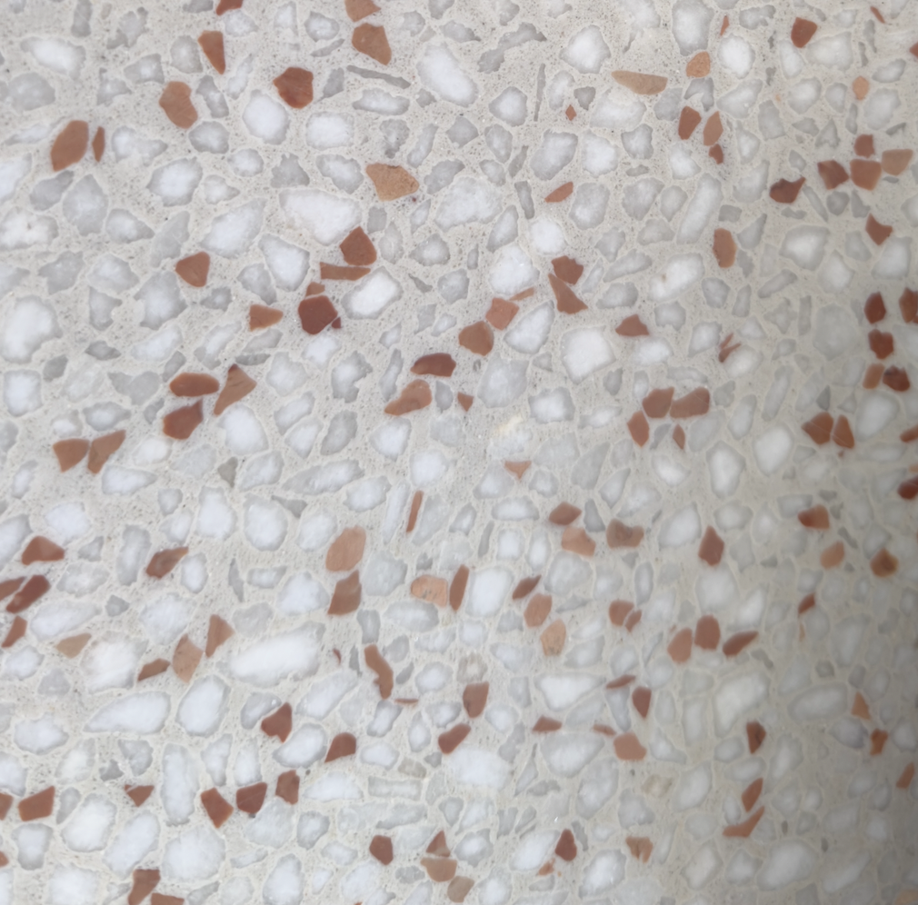 Zaoszczędzisz na początku, wybierając standardowe mineralne terrazzo, ale z czasem zapłacisz więcej — pęka, chłonie plamy, wymaga ciągłej renowacji i ma nieestetyczne dylatacje, które psują wygląd posadzki.